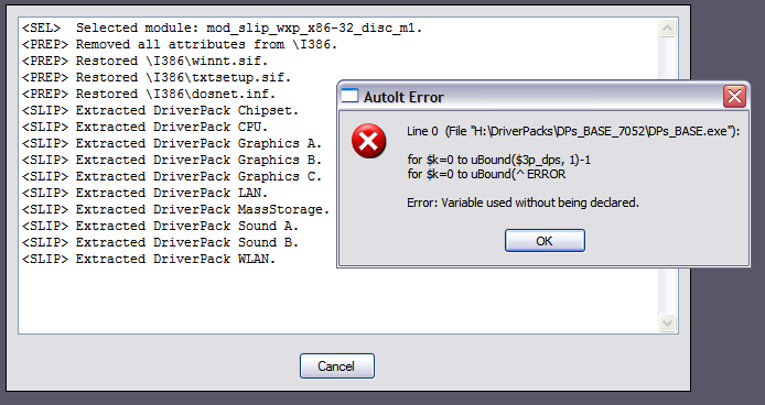 | Description | When I integrate packages of drivers a method 1 (are chosen all), I alwaSys receive this error | |||||||
