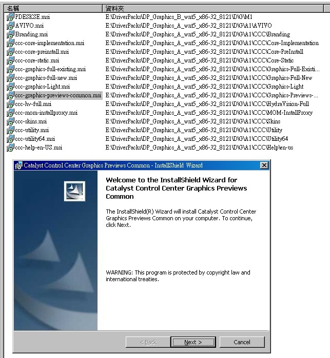 | Description | OS: Windows XP Professional Tool : nLite 1.4.9.1 Driver DP_Chipset_wnt5_x86-32_803.7z DP_CPU_wnt5_x86-32_804.7z DP_Graphics_A_wnt5_x86-32_8121.7z DP_Graphics_B_wnt5_x86-32_8121.7z DP_Graphics_C_wnt5_x86-32_8121.7z DP_LAN_wnt5_x86-32_8121.7z DP_MassStorage_wnt5_x86-32_901.7z DP_Sound_A_wnt5_x86-32_805.7z DP_Sound_B_wnt5_x86-32_805.7z DP_WLAN_wnt5_x86-32_806.7z when I Install "Windows XP" It say "Can not copy ccc-graphics-previews-common.msi" Does some drivers must install by .msi ? Could these drivers not integerated with Windows XP ? [URL=http://www.picfury.com [^]][IMG]http://www.picfury.com/2b/img/01-552.jpg[/IMG][/URL] [^] [URL=http://www.picfury.com [^]][IMG]http://www.picfury.com/2b/img/02-404.jpg[/IMG][/URL] [^] | |||||||